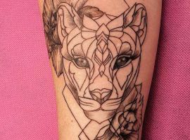 Наиболее популярными стилевыми направлениями является геометрия, лайнворк и графика. Они придают изображению львицы некую абстрактность. Но самой красивой техникой можно назвать реализм, предполагающий нанесение детально прорисованного эскиза. Еще одним подходящим стилем является акварель, наполненная яркими красками.
