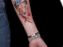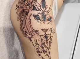 Однако в большинстве случаев дамы выбирают для такого тату открытые участки тела. Это связано с желанием владелицы намекнуть на высокое положение в обществе. Так что рисунки со львицами чаще имеют миниатюрные или средние размеры.