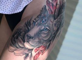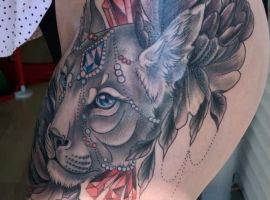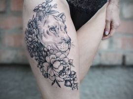 Тату, где нарисована львица, отличается универсальностью в плане выбора места для нанесения. Эскизы могут различаться по размерам, а для набивания – использован практически любой участок кожного покрова.