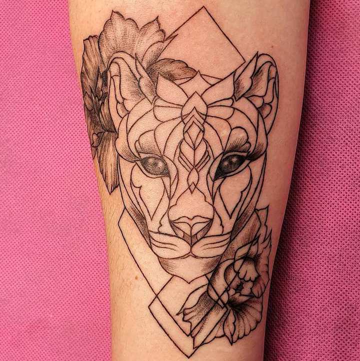 Наиболее популярными стилевыми направлениями является геометрия, лайнворк и графика. Они придают изображению львицы некую абстрактность. Но самой красивой техникой можно назвать реализм, предполагающий нанесение детально прорисованного эскиза. Еще одним подходящим стилем является акварель, наполненная яркими красками.
