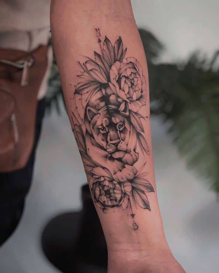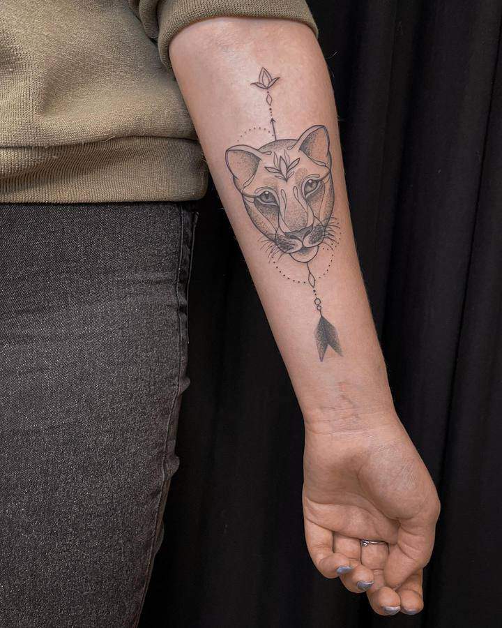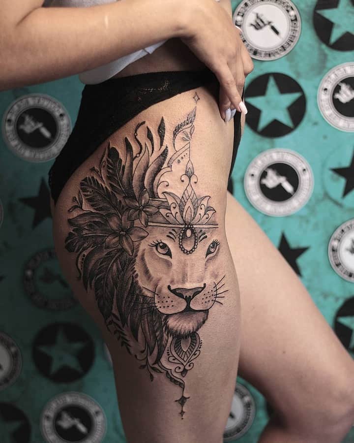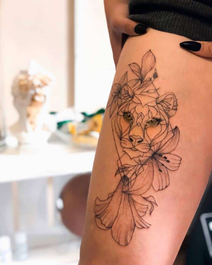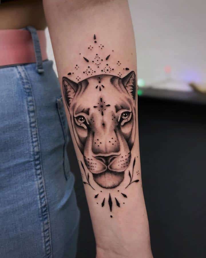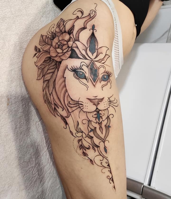 Как правило, рисунок со львицей предпочитают наносить на кожу женщины.