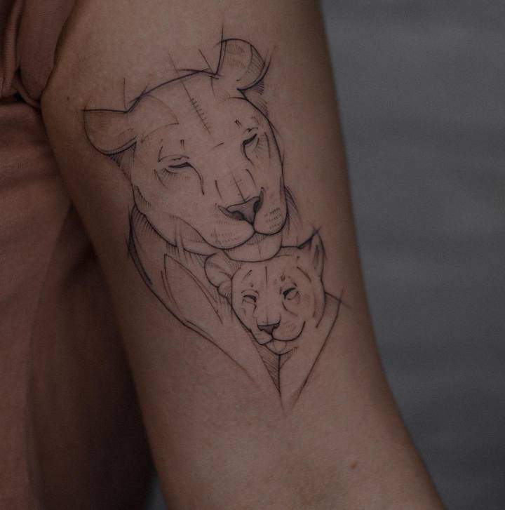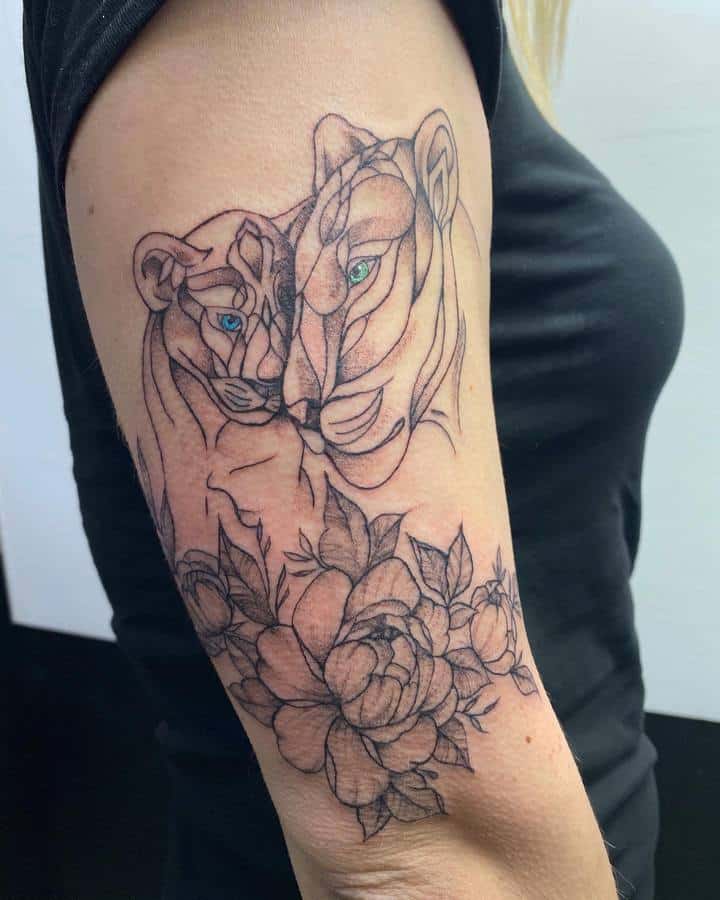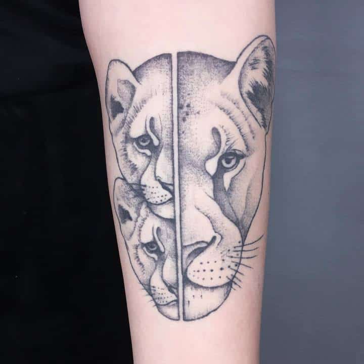 Иногда парные татуировки со львом и львицей набирают себе супруги со схожими взглядами на жизнь. Если львиную пару изображает на коже один человек, это говорит о его приверженности семейным ценностям или желании найти равную себе вторую половинку. Если женщина набивает на теле львицу и львенка, это является отражением материнских чувств обладательницы тату и стремлением создать крепкую семью.