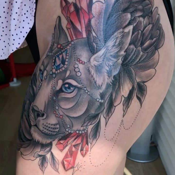 Тату, где нарисована львица, отличается универсальностью в плане выбора места для нанесения. Эскизы могут различаться по размерам, а для набивания – использован практически любой участок кожного покрова.