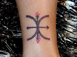- Знаки. Часто выбирают различные знаки в качестве идеи для небольшого тату. Это может быть как бесконечность или солнышко, так и крест, рука Фатимы и многое другое.