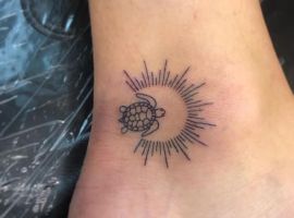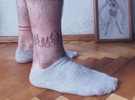 - Минимальная болезненность. Как правило, делать тату на ноге не больно, но, конечно, многое зависит от конкретной зоны тела и индивидуальной чувствительности. В любом случае не придется долго терпеть, ведь тату небольшое и мастер выполнит его быстро.