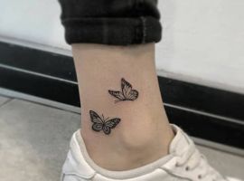 - Бабочка. Это насекомое является символом счастья, романтики и богатства. Как цветное тату бабочки, так и черно-белое смотрится на ноге потрясающе.