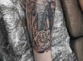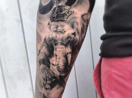 Парни тату слона делают чаще всего на спине или на плечах. Это животное раскрывает силу характера юноши, его стойкость и терпение. Оно указывает на постоянство, верность и преданность, если его набивают мужчины постарше. Еще одна версия гласит, что такое изображение притягивает успех и его выбирают те, кто стремится к лидерским позициям, желает завоевать авторитет, заботиться и защищать слабых.