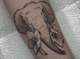 В салонах мастера предлагают настоящим леди сделать тату слона на ноге, на лодыжке или на запястье. Этот рисунок будет органично смотреться, как в цвете, так и в монохромном исполнении. Он может стать частью художественной композиции.