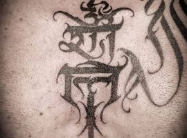 Самая популярная по всему миру мантра – Ом. Именно ее чаще всего используют в татуировках. В татуировках мантры обычно выглядят как надписи. Иногда их изображают с другими восточными символами и узорами. На коже чаще всего такие татуировки наносят на предплечье, на спине вдоль позвоночника, на плече и тд.