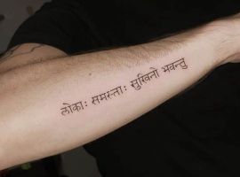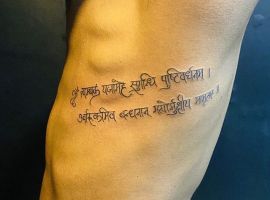 Значение татуировки мантра может быть разным, это зависит от того, какая именно мантра нанесена на кожу. Многие люди верят, что если нанести на тело важные слова, то их сила и влияние на жизнь человека будет значительно сильнее. Потому, не удивительно, что в качестве тату часто встречаются мантры. Обычно люди слушают мантры, напевают их или проговаривают, для привлечения определенных благ, а если нанести ее на кожу, то влияние должно усилиться.