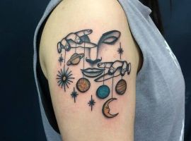 Очень интересна и нетривиальна идея для татуировки в виде марионетки. Издавна проводилась параллель между управляемой куклой и человеком, который подвластен судьбе. Так что смысловое значение татуировки с марионеткой заключается в подчеркивании того, что человеком постоянно управляет какая-то высшая сила. Она определяет и внешние обстоятельства, и поведение самого человека. Сделав такую татуировку, человек может высказывать свое фаталистическое мировоззрение. Или же, наоборот, он хочет проявить свою личную волю. Подчеркнуть, что он сам управляет своей жизнью. Такую идею лучше воплотить в виде марионетки, которая оборвала нити и освободилась.