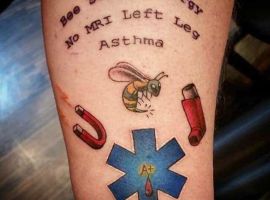 Второй случай – это аллергия на определенные препараты и лекарства, а также информация о группе крови. Чаще всего медицинские тату делают на запястье, где как раз и указывают названия того, что может вызвать аллергическую реакцию. Не имея такой информации, доктор может дать человеку лекарство, которое наоборот может только навредить здоровью больного и вызвать нежелательные последствия.