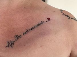 Часто такие тату делают себе врачи при наличии определенной болезни. Они в курсе возможностей современной медицины. И многие из них понимают, какой несчастливой может быть их жизнь после проведения реанимации. Доктора сталкиваются в своей практике с пациентами, которые мучались и умирали в итоге от подобных болезней… А процесс лечения только затягивал печальный итог. Врачи могут регулярно наблюдать, как изменяется жизнь пациентов, на разных стадиях. Люди становятся ограниченными в своих физических и интеллектуальных возможностях, они причиняют массу неудобств своим близким. Некоторые врачи предпочитают умереть без медицинского сопровождения, чем длительно мучатся и быть обузой с маловероятным излечением в итоге.