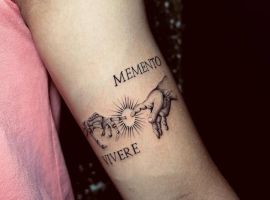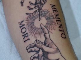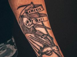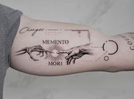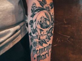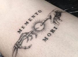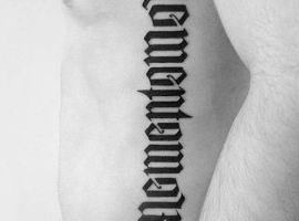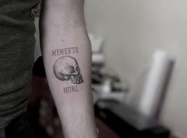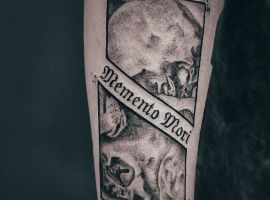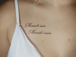 Татуировки в виде надписей были и остаются самыми популярными. Каждый выбирает фразу, которая отображает внутренний мир, взгляды, девиз по жизни, убеждения и вкусы. Особенно популярны крылатые высказывания на латыни. Ведь фразы великих мыслителей и философов прошлого, прошли столетия, и все равно остались актуальными. Одной из таких фраз является «Memento Mori» (Моменто Мори.