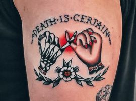 Опытные мастера не советуют наносить тату на пальцы. Ведь там кожа чаще трется, и татуировка стирается. Со временем, вместо четких букв, останутся непонятные пятна. В таком случае, Вам придется ходить с грязными пятнами на пальцах вместо надписи, либо часто делать коррекции, либо удалять тату лазером. Последнее занимает много времени, сил и средств. Так что лучше изначально хорошо думать о том, на каком месте наносить надпись «Memento Mori», чтоб в последствии не пришлось жалеть о своем выборе.