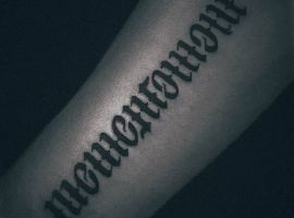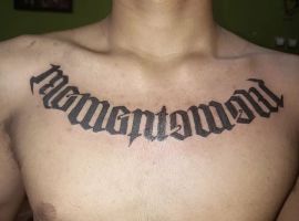 Конечно, чаще такую серьезную фразу выбирают мужчины. И соответственно, шрифт лучше выбирать более грубый, например, готический. Особенно смелые мужчины наносят надпись в большом объеме: на всю ширину груди или спины, на все предплечье. Или же на таких заметных местах как шея или кисть.