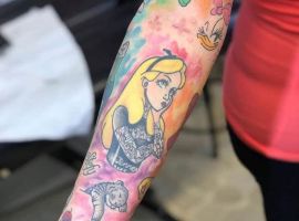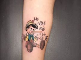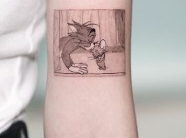 Замечательный вариант милой татуировки – любимый мультипликационный герой или персонаж, схожий по характеру с обладателем тату. Такие эскизы интересны не только девушкам, но и парням.