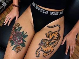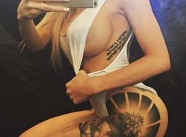 Знаменитая топ-модель Дейжа Морган может похвастаться одним из самых необычных тату – девушка набила цветного осьминога на ягодицах. Смысл изображение перекликается с мультфильмом «Русалочка». Дейжа вспоминает, что всегда хотела быть злодейкой со щупальцами, смогла выразить желание через тату осьминога.