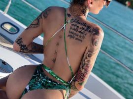 Своими тату отличилась бразильская модель Виктории Сикрет Изабели Фонтана. На спине женщины набиты крылья ангела и имя сына – Зион. Помимо этого, у модели есть тату на внутренней части губы.