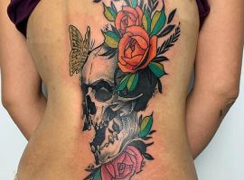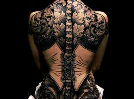 Американская фитнес-модель Джейми Бочерт славится элегантным змеиным скелетом, набитым вдоль позвоночника. Татуировка начинается в области поясницы и поднимается вдоль спинного мозга.