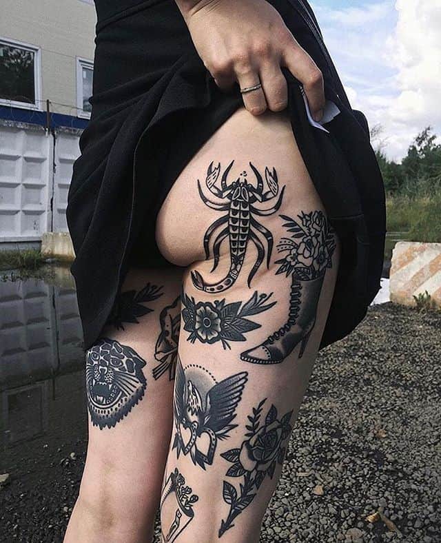 Знаменитая топ-модель Дейжа Морган может похвастаться одним из самых необычных тату – девушка набила цветного осьминога на ягодицах. Смысл изображение перекликается с мультфильмом «Русалочка». Дейжа вспоминает, что всегда хотела быть злодейкой со щупальцами, смогла выразить желание через тату осьминога.