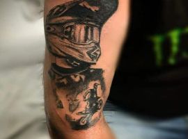 Так же часто делают мото-тату в виде мотоцикла – мечты, марки и модели, которую человек хочет приобрести. В таком случае, татуировка будет олицетворением цели, к которой нужно стремиться. Рисунок на коже будет мотивировать не сдаваться на пути к своей мечте.