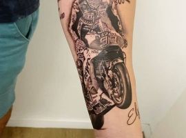 В некотором роде, скорость – это азарт, во время езды на мотоцикле, человек испытывает особый прилив адреналина и наслаждения жизнью. Потому такие татуировки выбирают люди, которые любят получать удовольствие от каждого мгновения и наполнять жизнь яркими эмоциями и впечатлениями.