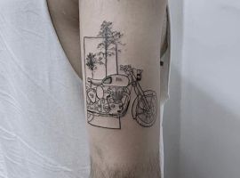 С другой стороны, татуировка в виде мотоцикла может быть олицетворением характера самого человека. Мотоцикл называют железным конем, потому он будет говорить о силе, смелости и уверенности владельца такого рисунка. А скорость будет говорить о целеустремленности и энергии. Закажите неповторимый эскиз в салоне Альянс в Киеве.