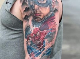 После череды популярных фильмов о супергероях Марвел, а в особенности – после грандиозной премьеры фильма «Мстители. Финал», фанаты стремятся увековечить любимых персонажей на своем теле с помощью татуировки, в Киеве и по всему миру. Каждый выбирает для себя героя тату Мстители, близкого по духу и мировоззрению. Изображения могут быть в самых разных стилях, от мультяшного до лаконичного монохромного.