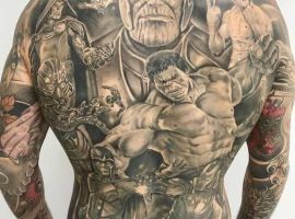 Также очень часто набивают татуировки с изображением Халка. Этот персонаж также очень узнаваемый: очень высокий, сильный и могущественный человек с зеленой кожей стал символом мужества, неудержимой внутренней силы. Потому именно мужчины очень любят наносить его на кожу в виде нательного рисунка, чтоб проявить соответствующие качества в себе.
