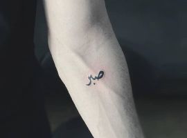 Татуировки на арабском смотрятся очень необычно и привлекательно. Особенностью написания арабских предложений можно назвать то, что слова пишутся, начиная с правой стороны и двигаясь на лево. По внешнему виду арабский текст напоминает красивую вязь. Выбирают такие тату надписи мужские не только мусульмане, а просто те, кто хотел бы запечатлеть на теле мудрые слова восточных мыслителей. Надписи со смыслом на арабском: أَحْيَانًا تَمُرُّ كُلُّ الشَّتَائِمِ، وَلَكِنْ لَا نَنْسَى الكَلِمَاتِ – «Обиды уйдут, но слова не забыть»; اجعل الله اولويتك. «Господь выше всего». Безусловно, если вы решите бить татуировки с переводом, то нужно удостовериться не только в правильности написания, но и в правильности выбора шрифта. Красота арабской надписи для европейского человека заключается именно в странном переплетении букв и черточек. Даже слегка неправильно подобранный шрифт может испортить это впечатление.