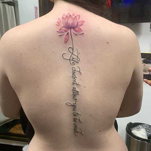 На позвоночник, как правило, наносят длинные тату вдоль всей спины. Это выглядит максимально эффектно. В принципе, здесь можно расположить любое продолговатое изображение, каждое из которых будет иметь свое важное значение для владельца. Однако, есть некоторые более популярные идеи, которые располагаются именно на позвоночнике и по смысловым причинам.
