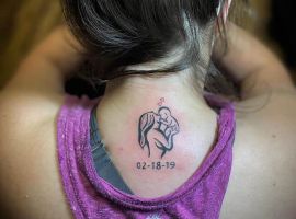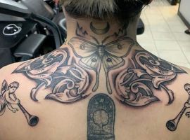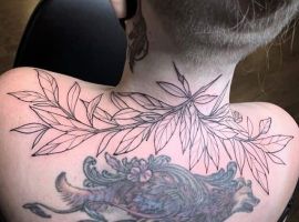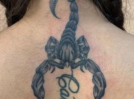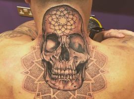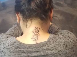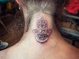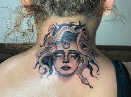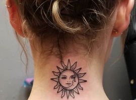 По этой причине у мужчин более распространены крупные татуировки, захватывающие не только затылок, но и заднюю часть головы, и виски. А девушки выбирают эскизы поскромнее и, чтобы сохранить волосы, нередко делают тату чуть ниже, на шее.