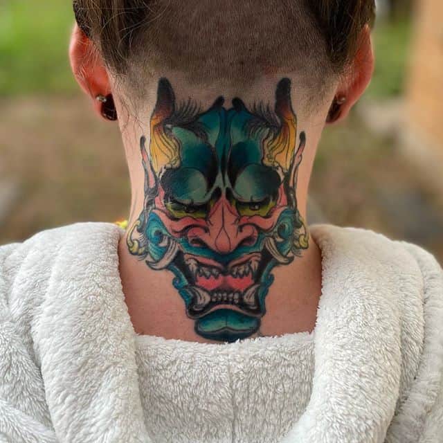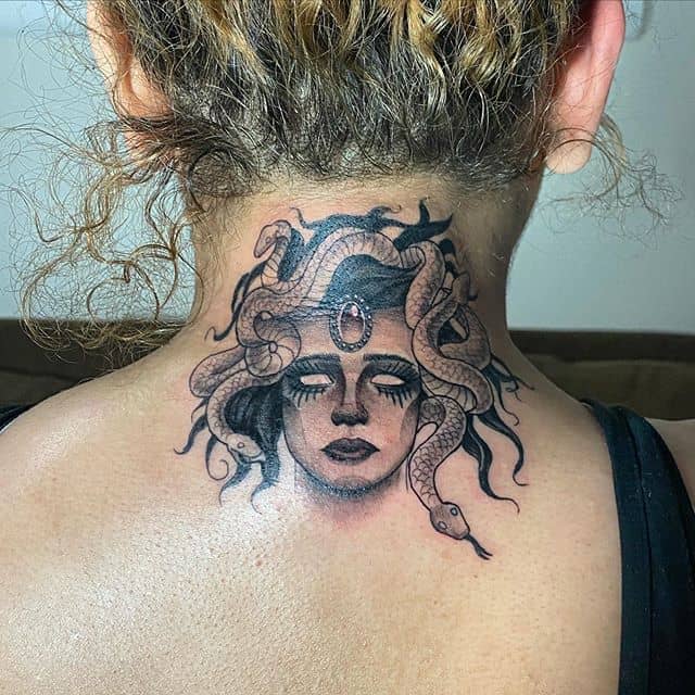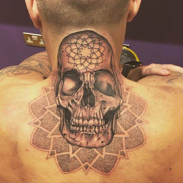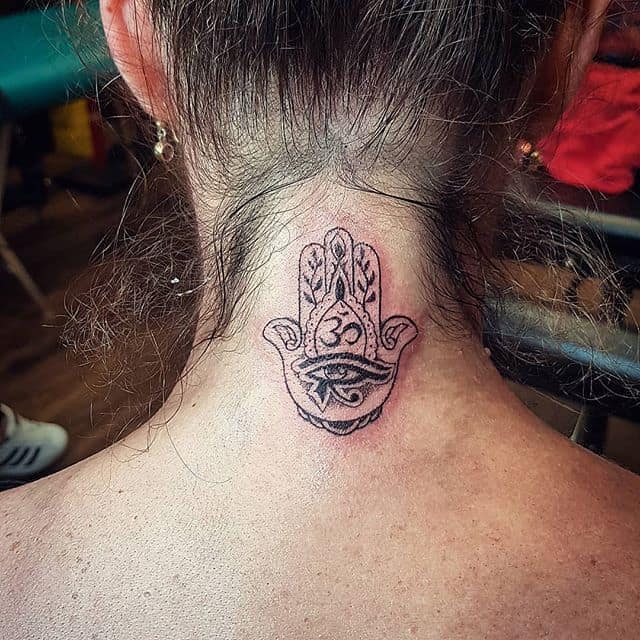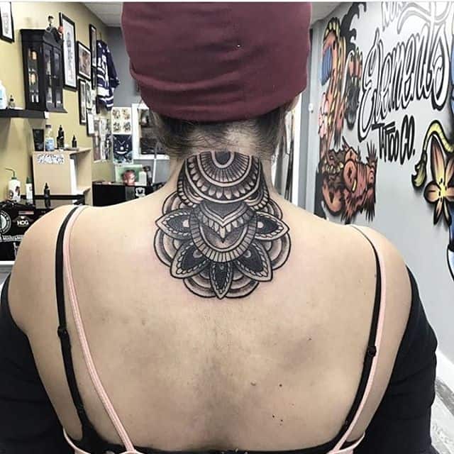 По этой причине у мужчин более распространены крупные татуировки, захватывающие не только затылок, но и заднюю часть головы, и виски. А девушки выбирают эскизы поскромнее и, чтобы сохранить волосы, нередко делают тату чуть ниже, на шее.