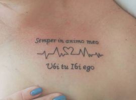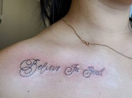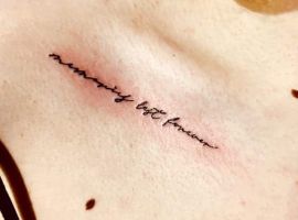 Обычно такие идеи наносятся вдоль ключичной кости, на ней, или немного ниже. Текст может занимать все пространство от плеча до грудины или располагаться посередине. Обычно она располагается диагонально, но может идти под ключицей горизонтально.