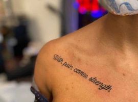 Слова на ключице – это интересная идея подчеркнуть свою индивидуальность. Правильно подобрав смысл фразы, цвет, шрифт, можно выразить свое отношение к чему-то или отразить особенности характера. Поэтому сначала нужно изучить фото разных вариантов тату, выбрать салон и мастера. Например, в Киеве лучшие мастера в салоне Альянс. Правильно и качественно нанесенный эскиз станет украшением тела, подчеркнет привлекательность.