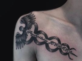 Мы советуем обязательно консультироваться со специалистом по всем вопросам, прежде чем делать выбор. Главная Ваша задача – выбрать саму фразу и ее смысл. А вот насчет того, как она будет выглядеть на коже, каким шрифтом, какого размера, на каком месте и стоит ли к ней что-то добавлять – по всем этим вопросам вас должен предварительно проконсультировать мастер. И, конечно же, его тоже стоит выбирать серьезно. Смотрите на портфолио художника. Каждый отдельный стиль, даже если внешне он кажется очень простым, имеет свои особенности, не зная которые, можно просто «напартачить». Так что ищите в портфолио специалиста именно надписи. В нашем салоне Альянс в Киеве есть те, кто Вам подойдет!