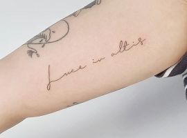 Есть те, кто наносит тату на тело сугубо в качестве украшения. К примеру, цветы или узоры, орнаменты и абстракцию. В то же время, многим людям очень важно, чтоб татуировка несла и какой-то определенный, личный смысл. Любой рисунок, будь то цветы, животные, портреты или символы – можно трактовать по-разному. А часто хочется, чтоб рисунок на коже передавал абсолютно четкий, конкретный смысл. А что лучше передаст желаемое значение, как не конкретная фраза?