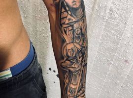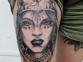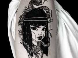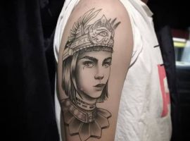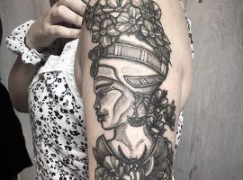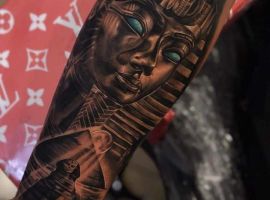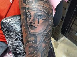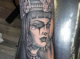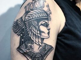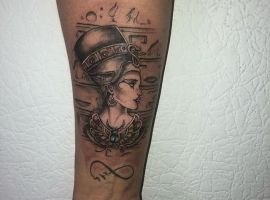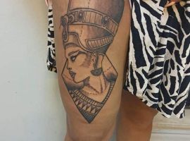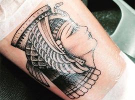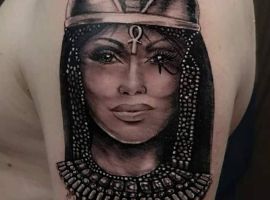 Образы Нефертити и Клеопатры известны в веках и не теряют своей актуальности. Если Вам нравится такая красивая и эстетичная идея для татуировки, смело выбирайте идею в нашей галерее. А если Вы хотите оригинальную идею, неповторимую и особенную, то обратитесь к нашим мастерам салона Альянс в Киеве, которые создают эскизы на заказ.