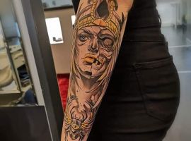 Так как на тело наносятся исторические персонажи, чаще всего изображают голову цариц. Но выполняют тату не схематично, а детально прорисовывая каждую мелочь, чтобы рисунок был реалистичным, используют следующие стили нанесения:
