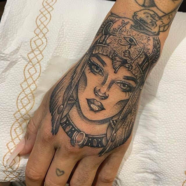 Как выглядела Клеопатра можно узнать по изображениям на монетах, сохранившихся до наших дней. О её неземной красоте говорят воспоминания философов тех времён, но восхваляют её не только за внешность, а в большей степени за очарование, мудрость, умение владеть собой. Значение эскиза татуировки цариц Древнего Египта связывается не только с красотой, но и с чертами характера.