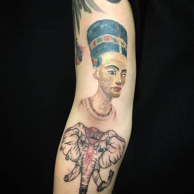 Нельзя забывать и о внешности Нефертити. На протяжении многих лет она является эталоном красоты. Изображение на теле символизирует как внешнюю, так и внутреннюю красоту.