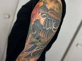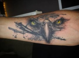 Татуировки хищных птиц имеют похожие значения. В основном все они сводятся к храбрости, упорству, стремлению добиваться поставленных целей. Как правило, стимулом к нанесению таких рисунков является ассоциация своего внутреннего «Я» с определенной птицей. Закажите эскиз у мастера салона Альянс в Киеве.
