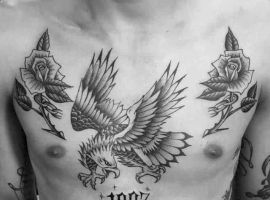 - при нанесении орел на груди тату, оно подчеркивает статус в обществе, уверенность и готовность действовать и добиваться поставленных целей;
