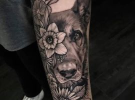 Хозяин тату овчарка – человек доброжелательный и позитивный, но постоять за себя умеет.