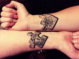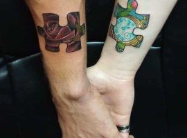 Когда два человека становятся рядом, и их тату складываются в единую картинку – это неизменно вызывает восторг даже у случайных зрителей.