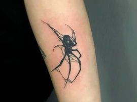 - тату паук на руке указывает на открытость, значительный творческий и профессиональный потенциал (особенно эффектно смотрится тату паук на плече и локте, выпуклые части тела придают рисунку объем и реалистичность);