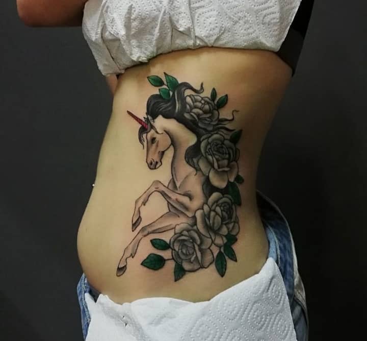 Изображение тату пегас на коже символизирует превосходство духовных ценностей над материальными вещами. Если расшифровывать данный образ, обращаясь к мифологии, то это создание было преданным помощником Персея, сражаясь на пару с ним со страшными чудовищами.