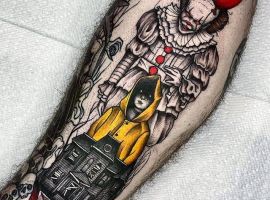 Татуировки с клоуном Пеннивайз из фильма «Оно» обрели популярность в 2017 году, когда фильм вышел в свет. Кино получилось таким ярким и насыщенным, что обрело миллионы фанатов по всему миру. В свою очередь, главный герой – сам клоун получился таким харизматичным и запоминающимся, что его образ и стали наносить на кожу.