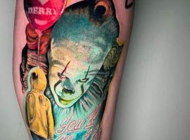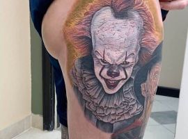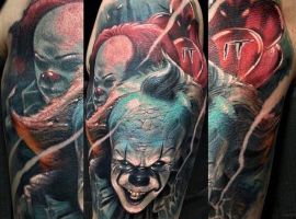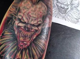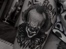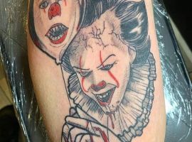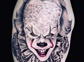 Сегодня в тату моду стремительно входит стиль хоррор, само название которого говорит само за себя. Люди с удовольствием наносят на кожу реалистичные изображения устрашающих персонажей известных фильмов ужасов. Так появились и татуировки с клоуном Пеннивайз из фильма «Оно». Подробнее об этом расскажут специалисты тату салона Альянс в Киеве.
